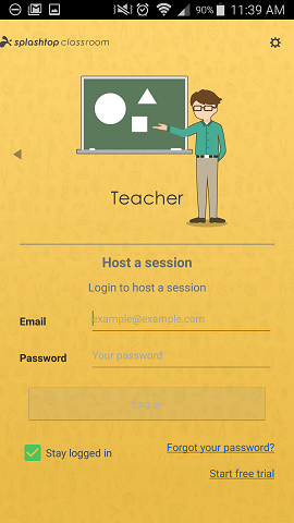 Melden Sie sich auf dem Bildschirm Host a Session mit dem Splashtop-Konto an, das Sie für Splashtop Classroom auf dem Computer und online verwenden. Möglicherweise werden Sie aufgefordert, Ihre E-Mail zu authentifizieren (klicken Sie auf einen Link in Ihrer E-Mail), um die Sicherheit zu gewährleisten.