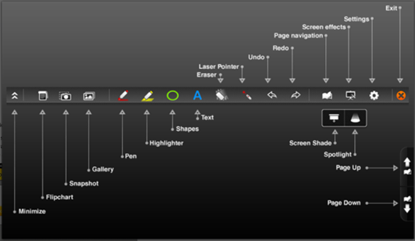 Ihr iPad zeigt den Inhalt an, der auf dem Bildschirm Ihres Computers angezeigt wird. Sie werden in der Lage sein, den Computer von Ihrem iPad aus mit verschiedenen Fingerbewegungen zu steuern. Sie können auch den Gerätescreen aufnehmen, den Bildschirm annotieren (und die Anmerkungen werden auf Ihrem Computer und Projektor erscheinen, wenn Sie projizieren) sowie Schnappschüsse des Bildschirms machen (die in einem Ordner auf Ihrem Computer-Desktop gespeichert werden).