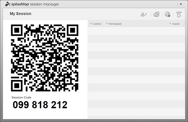 Die Schüler können jetzt mitmachen, indem sie den QR-Code auf Ihrem Bildschirm (oder dem Bildschirm, auf den Sie projizieren) scannen, oder sie können den neunstelligen Sitzungscode in die Splashtop-App auf ihren Geräten eingeben.