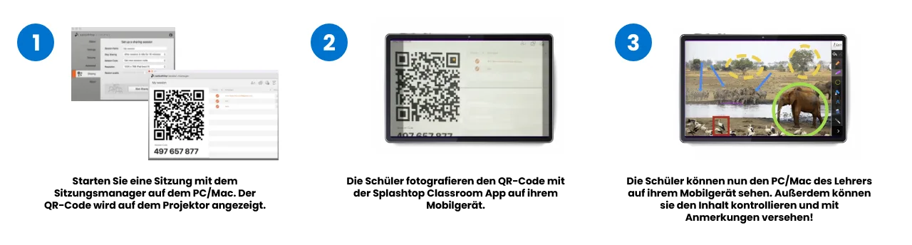 Unabhängig davon, ob die Schule 1:1-Geräte für Schüler bereitstellt oder diese ihre eigenen Geräte von zu Hause mitbringen, funktioniert Splashtop Classroom auf iPads, iPhones, Android-Geräten, Chromebooks oder jedem Computer mit Chrome-Browser.
