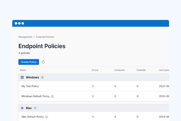 Customize and enforce policies across endpoints to maintain compliance and safeguard networks.