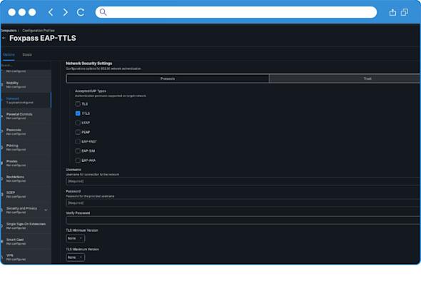 Enroll devices: Use certificate‑based authentication and integrate with Intune, Jamf, Kandji, Mosyle, and more. Or enable passwordless BYOD authentication with Foxpass BYOD Certificate Installer.