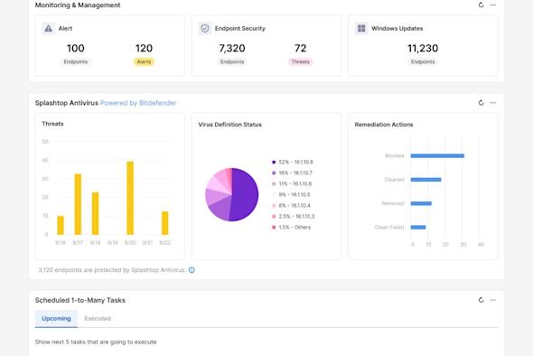 パッチのステータス、デバイスの健全性、コンプライアンスを単一のダッシュボードから追跡します。詳細なログとレポートにアクセスして、監査をサポートし、セキュリティへの対応を実証します。